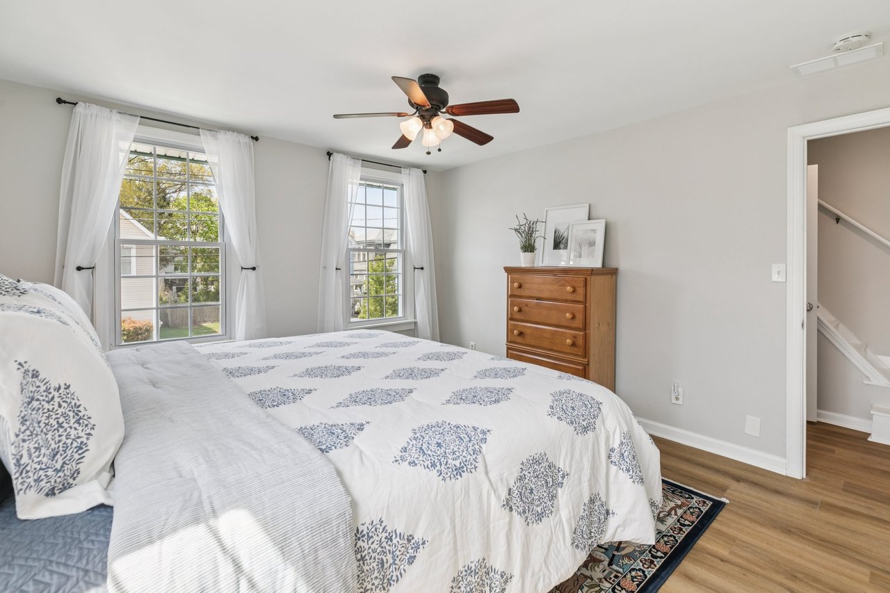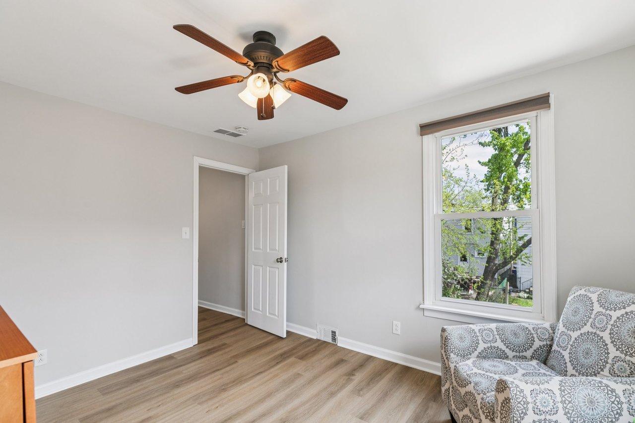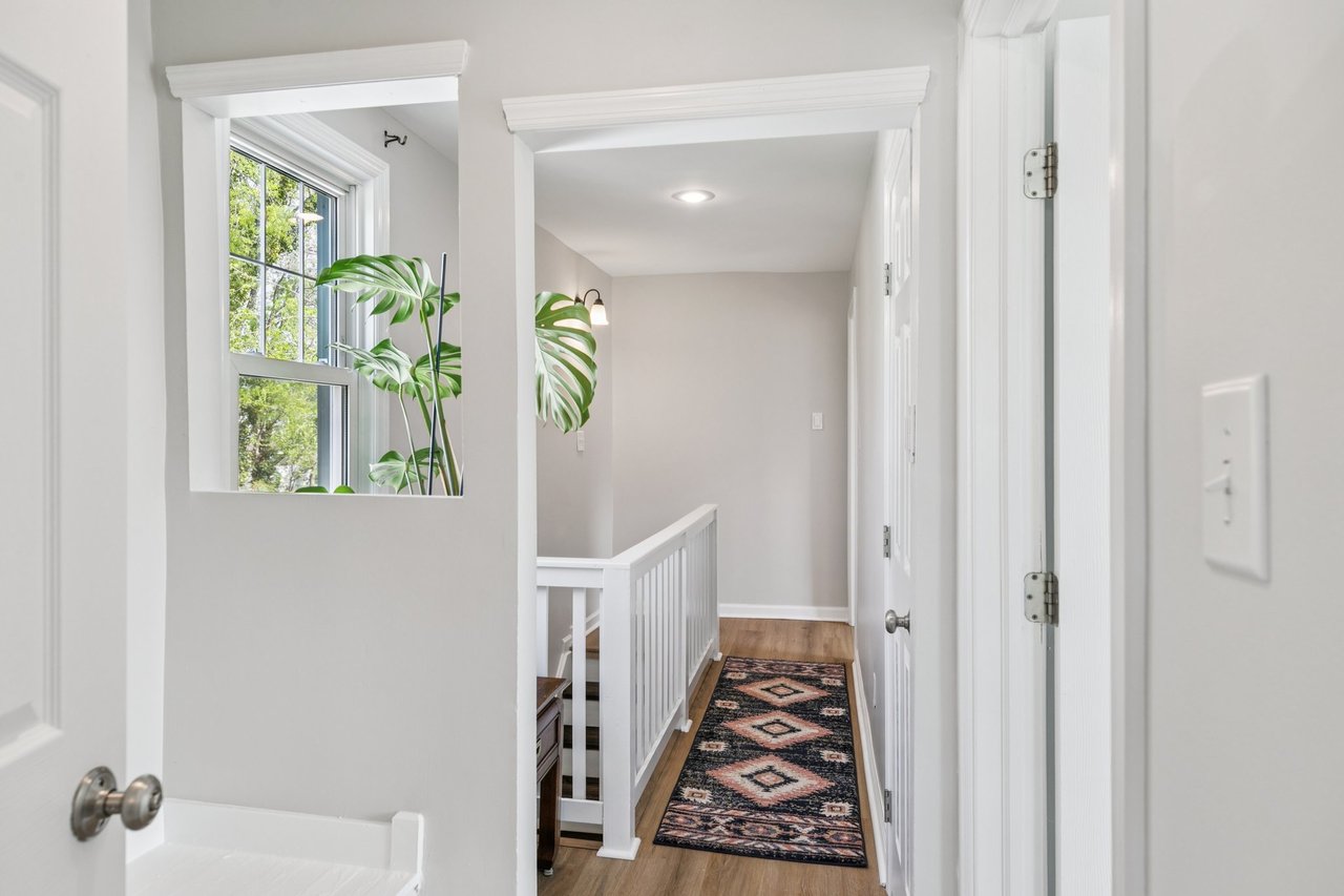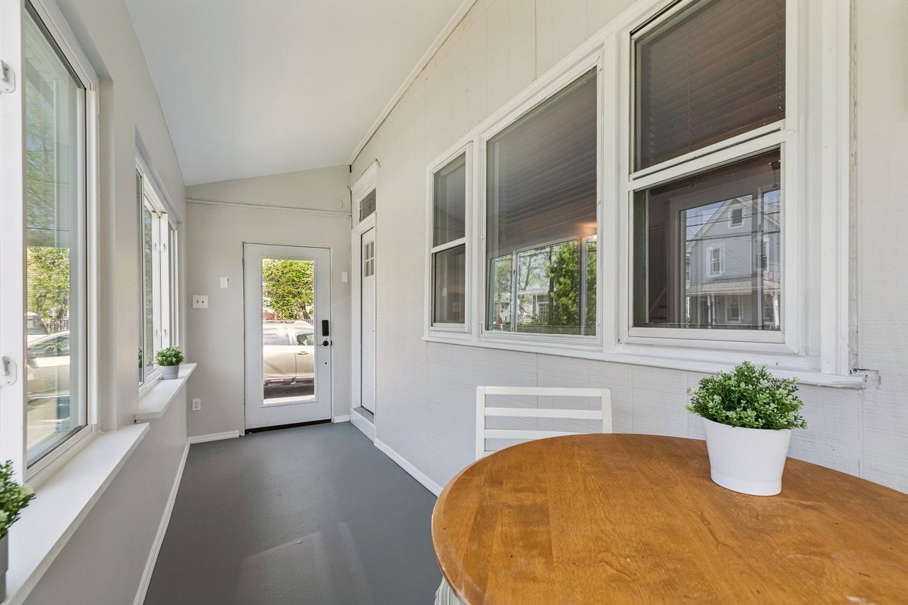 Step inside through the recently refinished enclosed front porch, a welcoming spot to start your day with a cup of coffee or unwind in the evening. The main level features a spacious, open living and dining area with a comfortable flow, ideal for both everyday living and hosting guests.The kitchen is thoughtfully updated with a new refrigerator, stainless steel appliances, white shaker cabinetry, and a tile backsplash, and is complemented by a generously sized mudroom with access to the backyard.