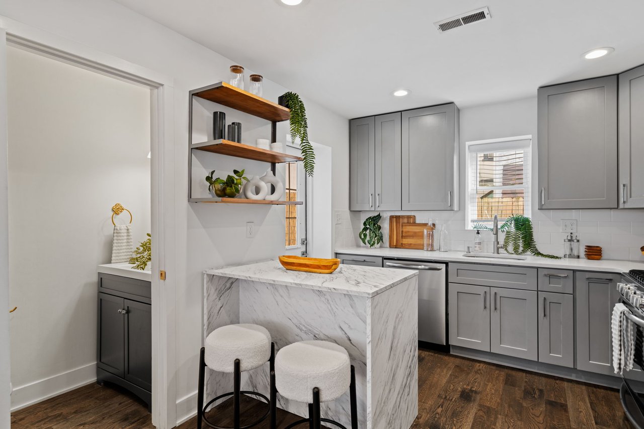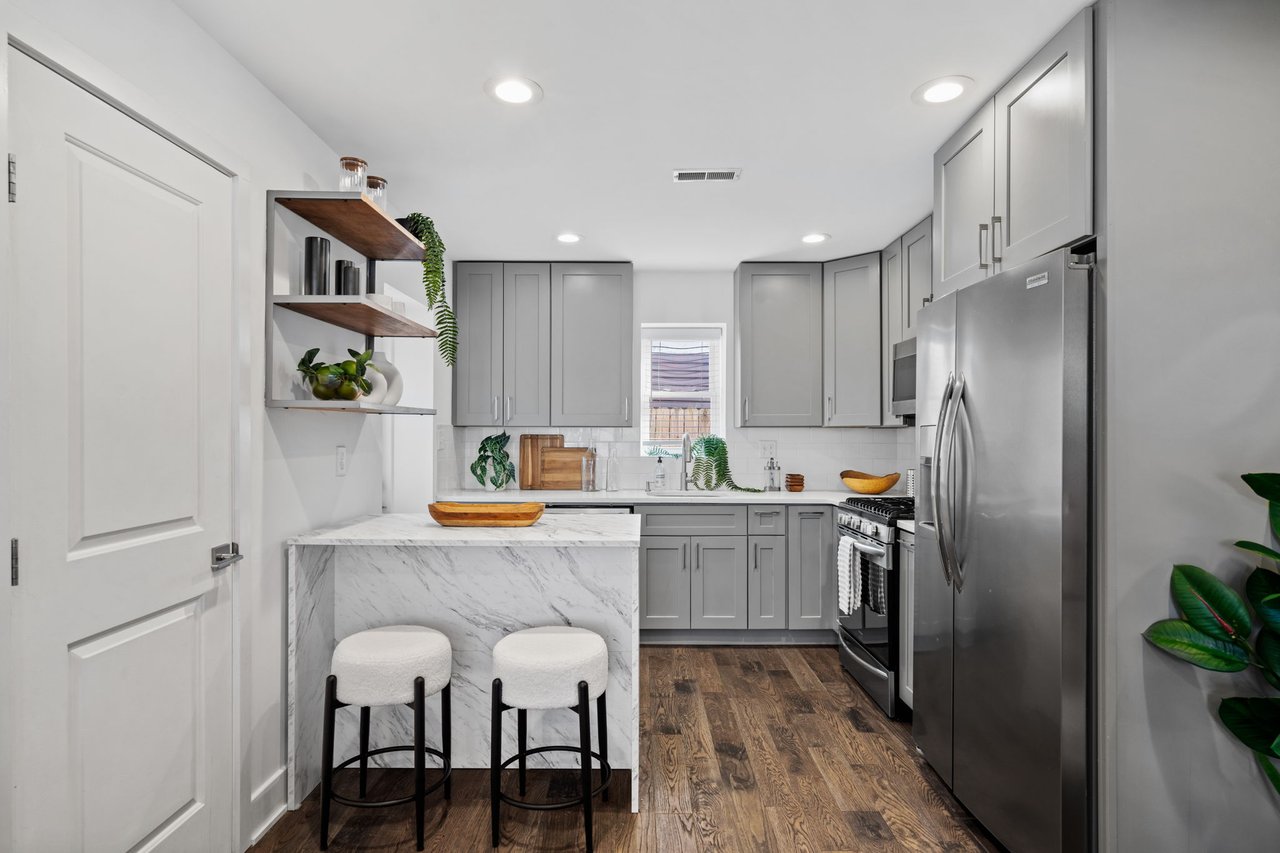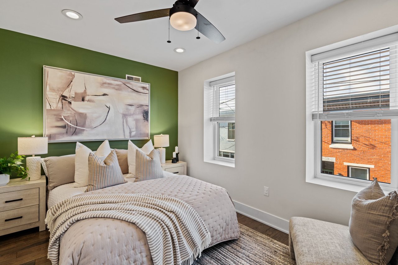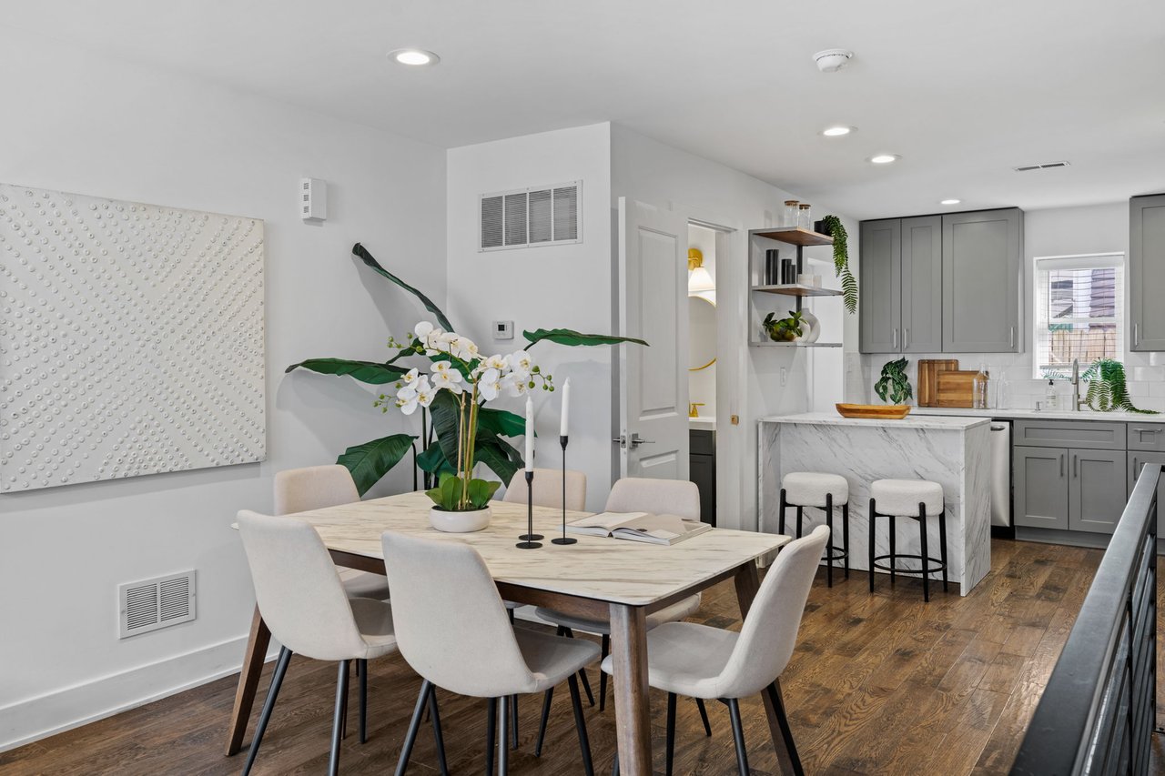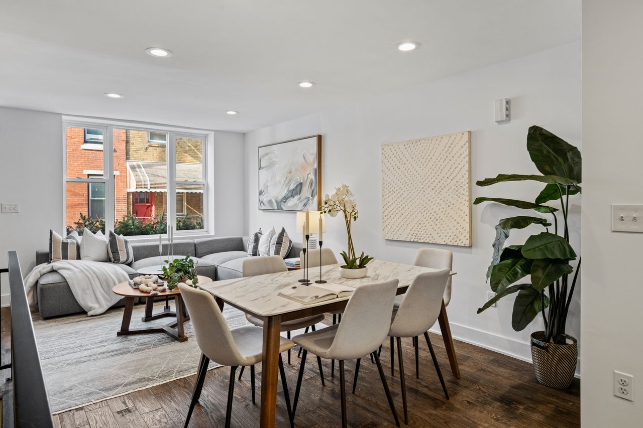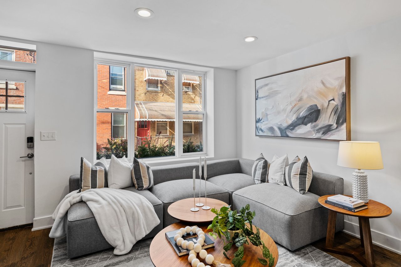 Located on a quiet block in East Passyunk, this thoughtfully renovated home features an attractive brick façade and a welcoming, open-concept first floor, ideal for everyday living and entertaining, with wood flooring, abundant natural light, and a conveniently placed half bath. Exposed brick adds warmth and character. The living and dining areas flow seamlessly into the modern kitchen which is both stylish and functional, featuring shaker cabinets, quartz countertops, stainless steel appliances, and a breakfast bar (included). The second level offers two generously sized bedrooms, including a primary suite with an en suite bathroom, along with an additional full hall bathroom. A finished basement provides flexible living or workspace options, as well as separated laundry and utility areas. High-efficiency central air conditioning and heating keep you comfortable year-round. The prime location, just steps from Passyunk Avenue’s shops and restaurants—and only two blocks from the subway—complete the package for this beautifully updated home. Four years remaining on partial TAX ABATEMENT.