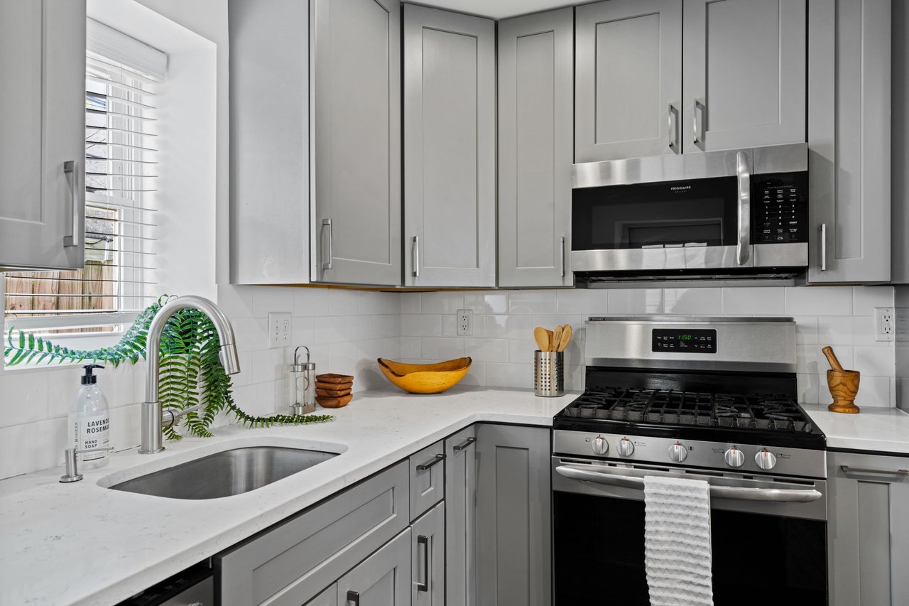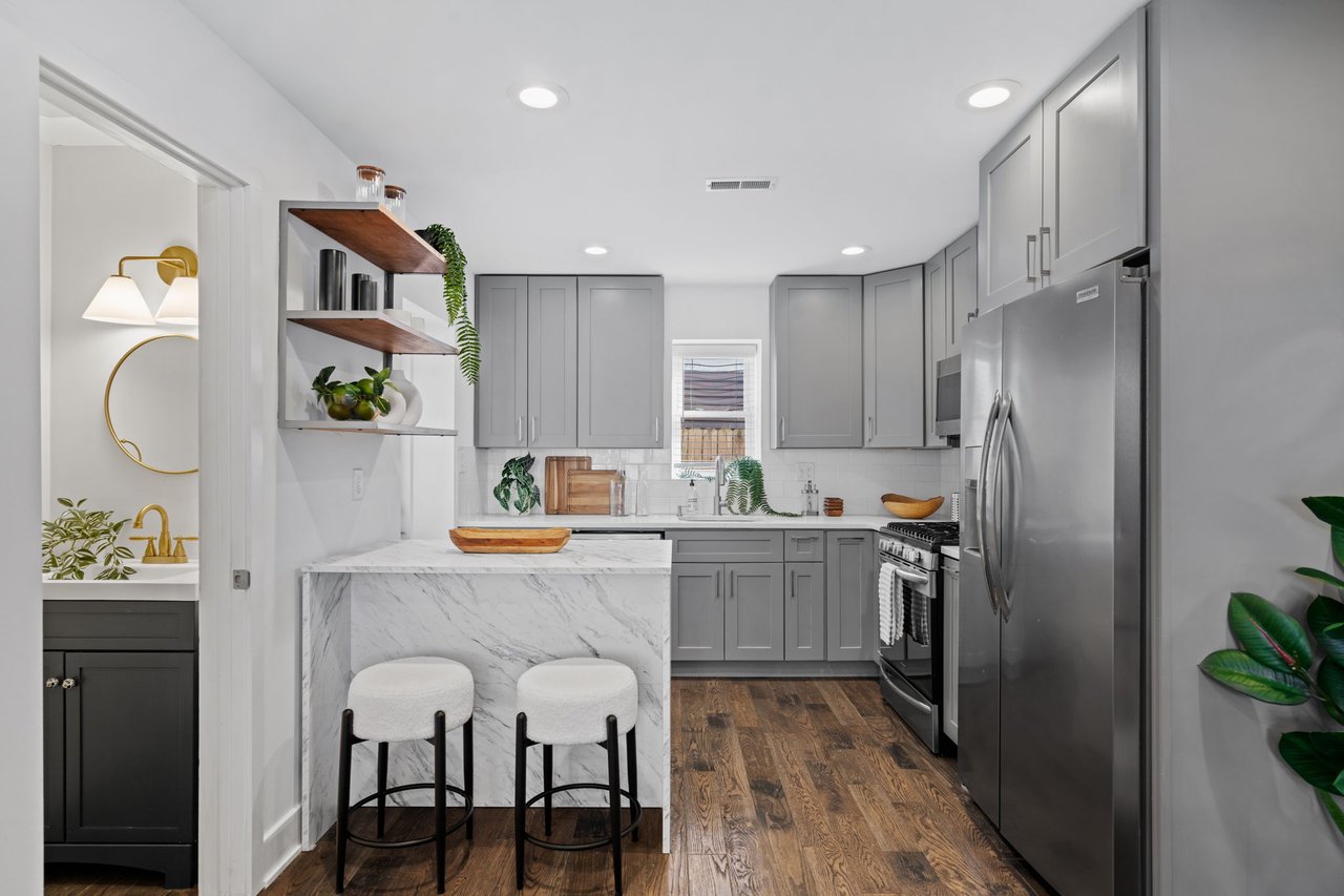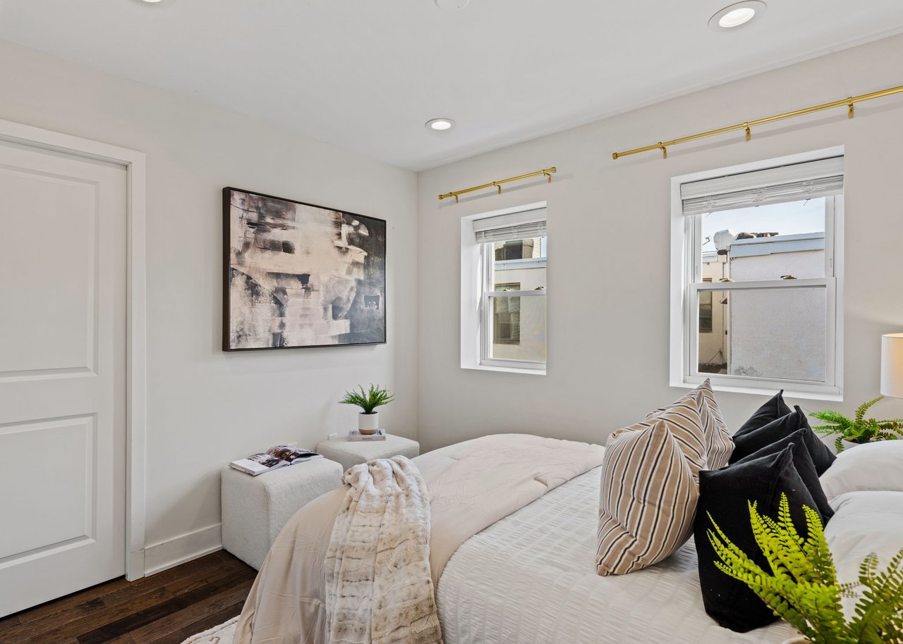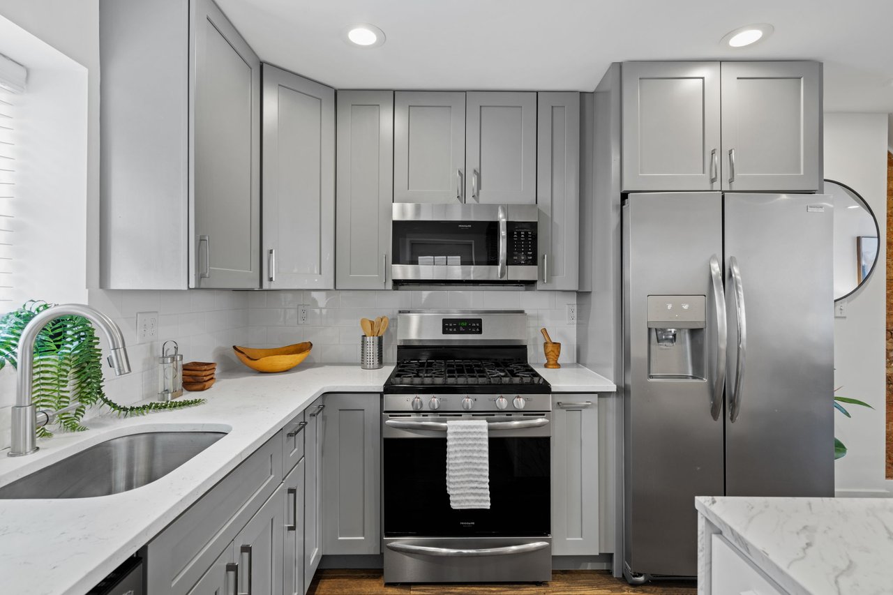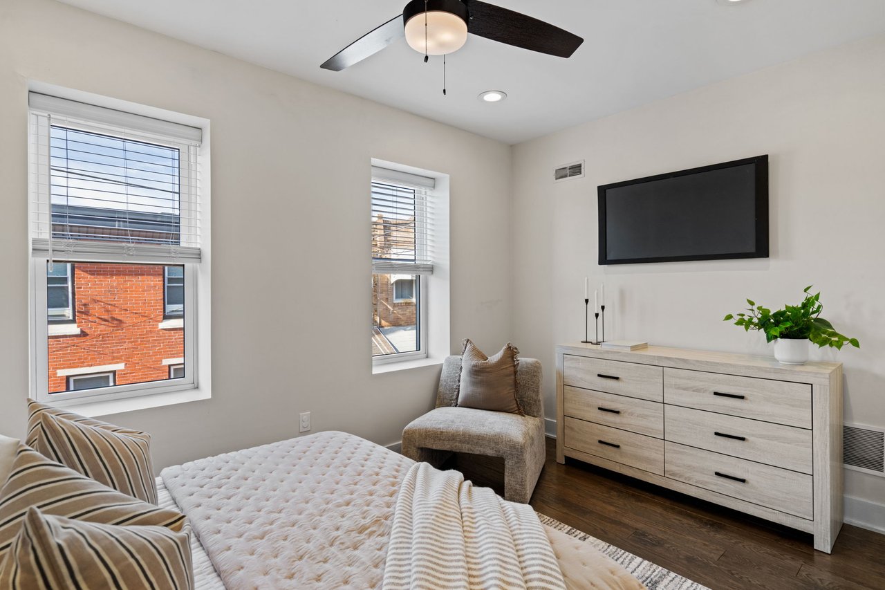 Located on a quiet block in East Passyunk, this thoughtfully renovated home features an attractive brick façade and a welcoming, open-concept first floor, ideal for everyday living and entertaining, with wood flooring, abundant natural light, and a conveniently placed half bath. Exposed brick adds warmth and character. The living and dining areas flow seamlessly into the modern kitchen which is both stylish and functional, featuring shaker cabinets, quartz countertops, stainless steel appliances, and a breakfast bar (included). The second level offers two generously sized bedrooms, including a primary suite with an en suite bathroom, along with an additional full hall bathroom. A finished basement provides flexible living or workspace options, as well as separated laundry and utility areas. High-efficiency central air conditioning and heating keep you comfortable year-round. The prime location, just steps from Passyunk Avenue’s shops and restaurants—and only two blocks from the subway—complete the package for this beautifully updated home. Four years remaining on partial TAX ABATEMENT.