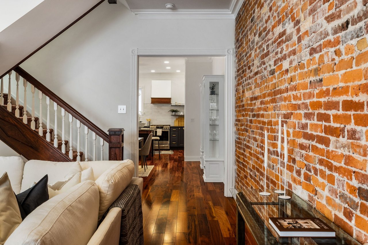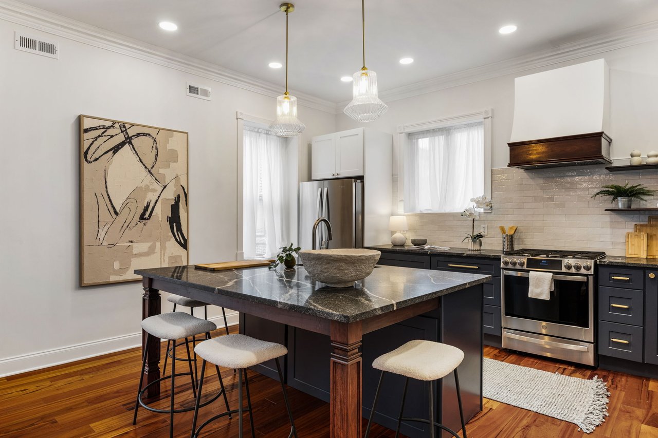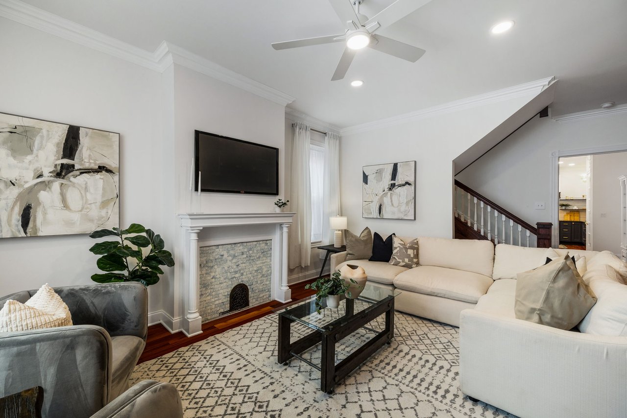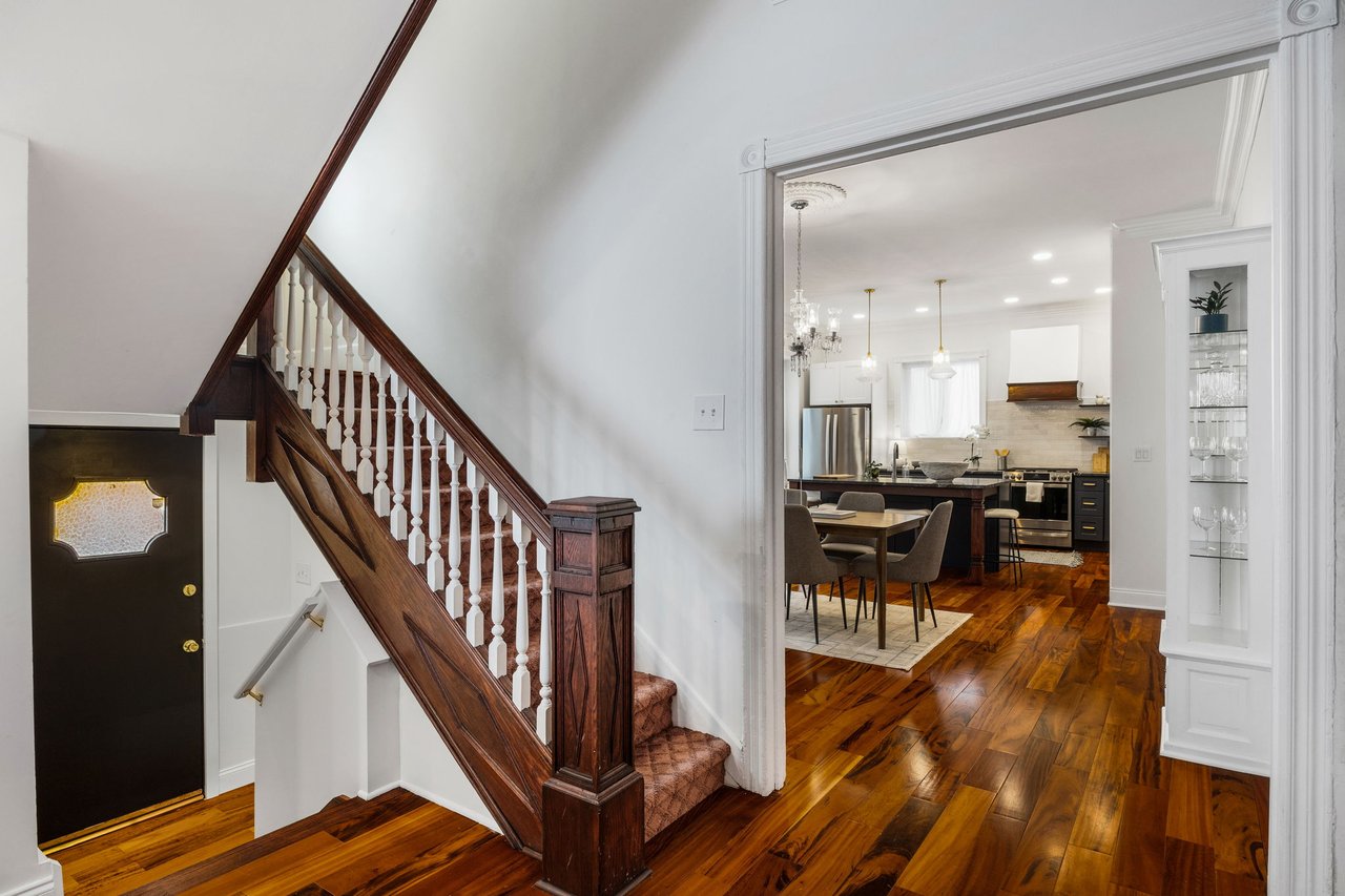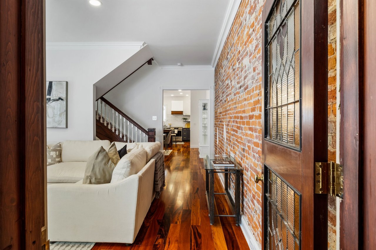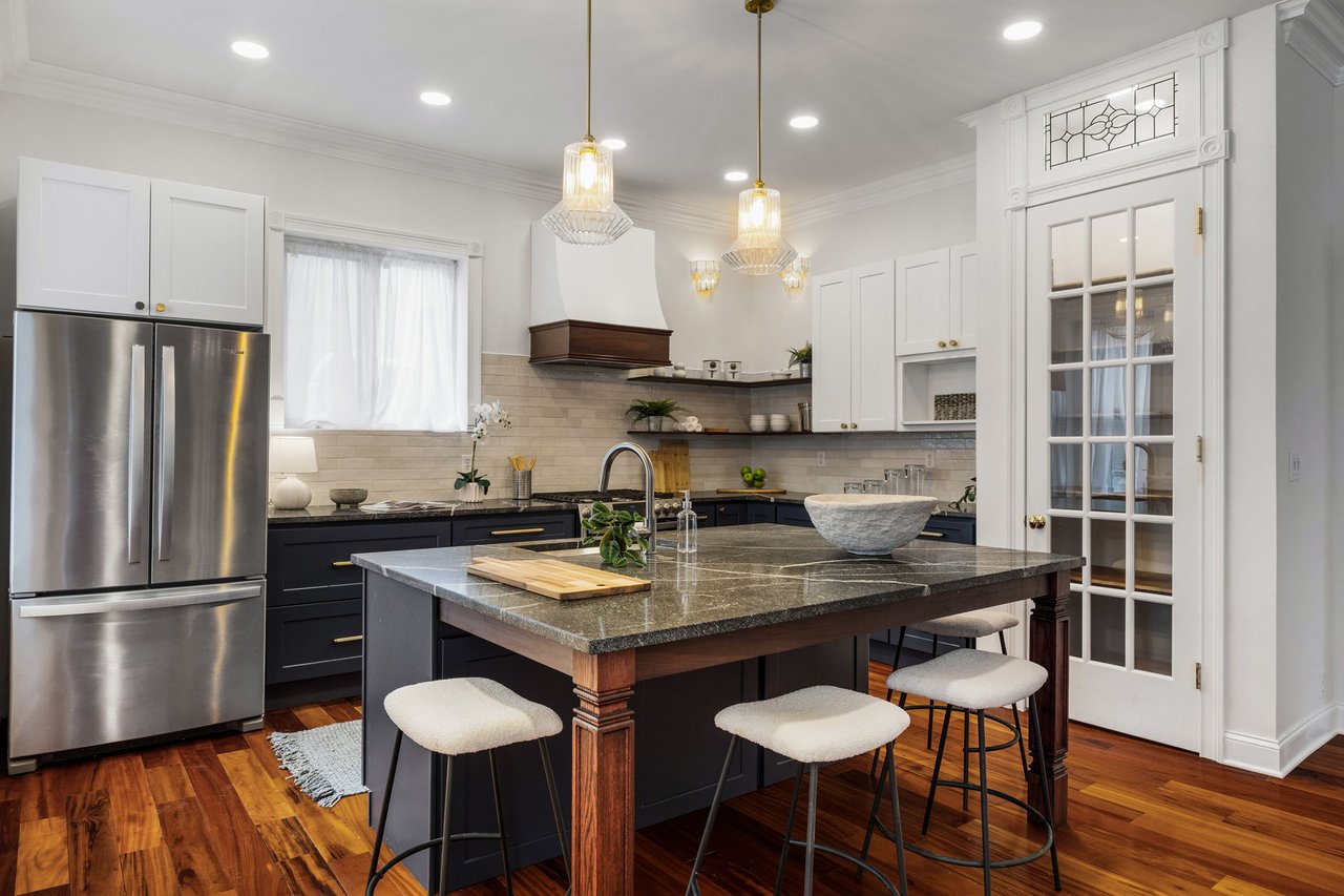 You’ll believe in love at first sight when you walk through the mahogany front door of this truly stunning, one-of-a kind home that combines historical charm with modern amenities. Step inside the ornately-tiled entryway with original stained glass door & transom to a gorgeous living room with 10’ high ceilings, hardwood floors, crown molding, a decorative mantle, and exposed brick wall. Continue to the spacious dining room with built-ins, open to the recently-renovated chef’s kitchen including two-tone cabinetry, granite countertops, a chic tile backsplash, and a glass door pantry. Head up the freshly carpeted stairs, past an original stained glass window, to find a luxurious primary bedroom with crown molding, original decorative mantle, and a sunny bay window. This floor features two additional large bedrooms and a tastefully renovated bathroom with a double vanity, glass-enclosed shower, and a cast iron clawfoot tub. The huge 3rd floor bonus space is perfect for relaxing or entertaining with soaring ceilings and a custom built-in wet bar, complete with a wine fridge and kegerator! The stairs lead to the roof with incredible views of the Center City skyline. Roof deck potential! The spacious basement, ready to be finished, boasts laundry, storage and a nicely updated full bathroom. Other bonus features include dual zone HVAC, newer sewer and water lines and a rear patio accessible from S Bouvier Street. This home was owned by the original family circa 1900-2005. *Some exterior photos have been edited for marketing purposes.