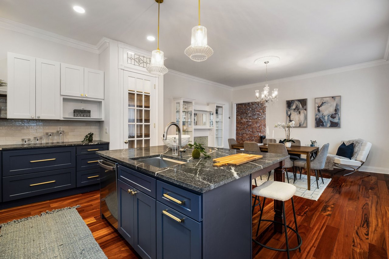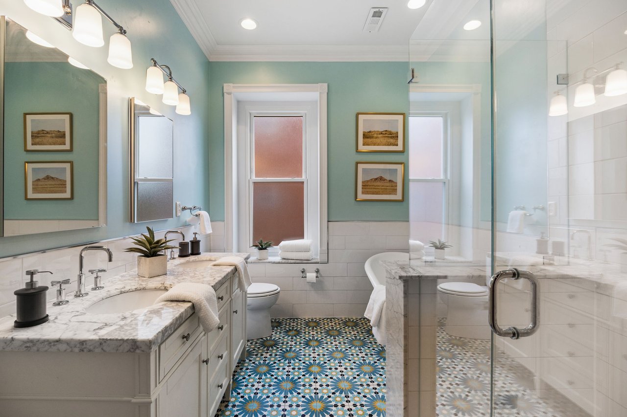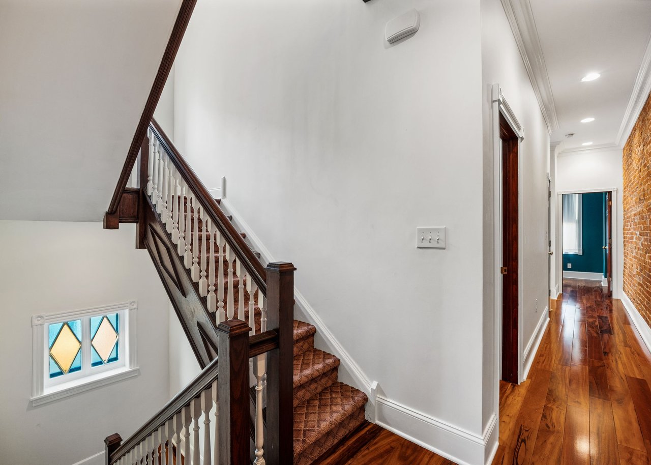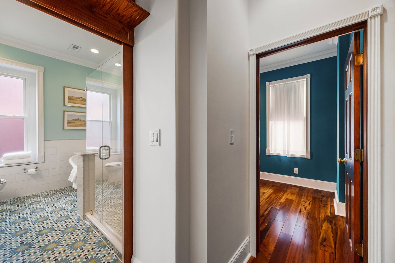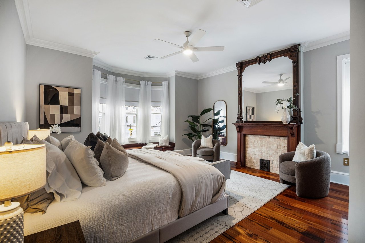 You’ll believe in love at first sight when you walk through the mahogany front door of this truly stunning, one-of-a kind home that combines historical charm with modern amenities. Step inside the ornately-tiled entryway with original stained glass door & transom to a gorgeous living room with 10’ high ceilings, hardwood floors, crown molding, a decorative mantle, and exposed brick wall. Continue to the spacious dining room with built-ins, open to the recently-renovated chef’s kitchen including two-tone cabinetry, granite countertops, a chic tile backsplash, and a glass door pantry. Head up the freshly carpeted stairs, past an original stained glass window, to find a luxurious primary bedroom with crown molding, original decorative mantle, and a sunny bay window. This floor features two additional large bedrooms and a tastefully renovated bathroom with a double vanity, glass-enclosed shower, and a cast iron clawfoot tub. The huge 3rd floor bonus space is perfect for relaxing or entertaining with soaring ceilings and a custom built-in wet bar, complete with a wine fridge and kegerator! The stairs lead to the roof with incredible views of the Center City skyline. Roof deck potential! The spacious basement, ready to be finished, boasts laundry, storage and a nicely updated full bathroom. Other bonus features include dual zone HVAC, newer sewer and water lines and a rear patio accessible from S Bouvier Street. This home was owned by the original family circa 1900-2005. *Some exterior photos have been edited for marketing purposes.