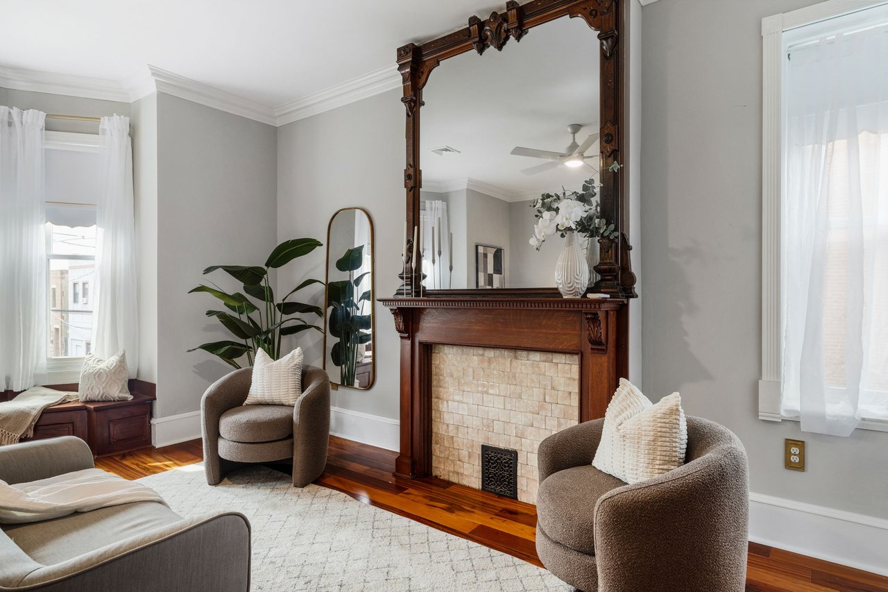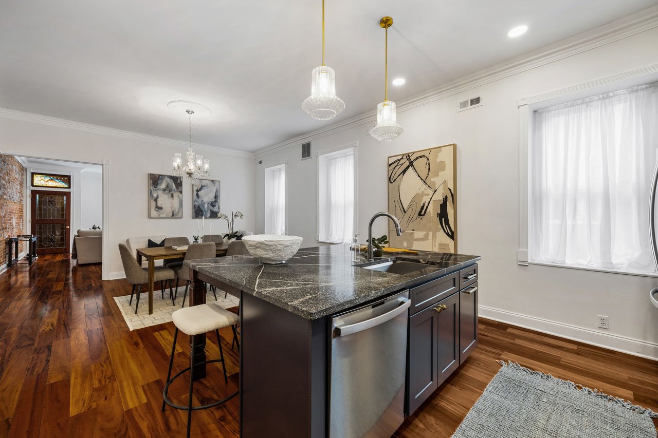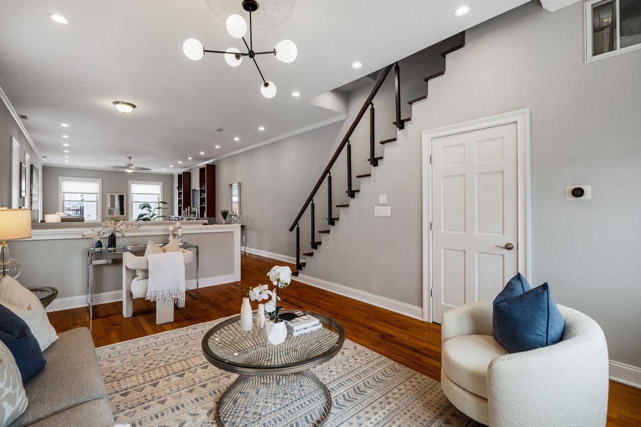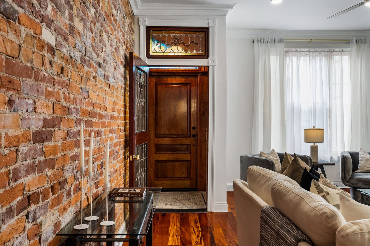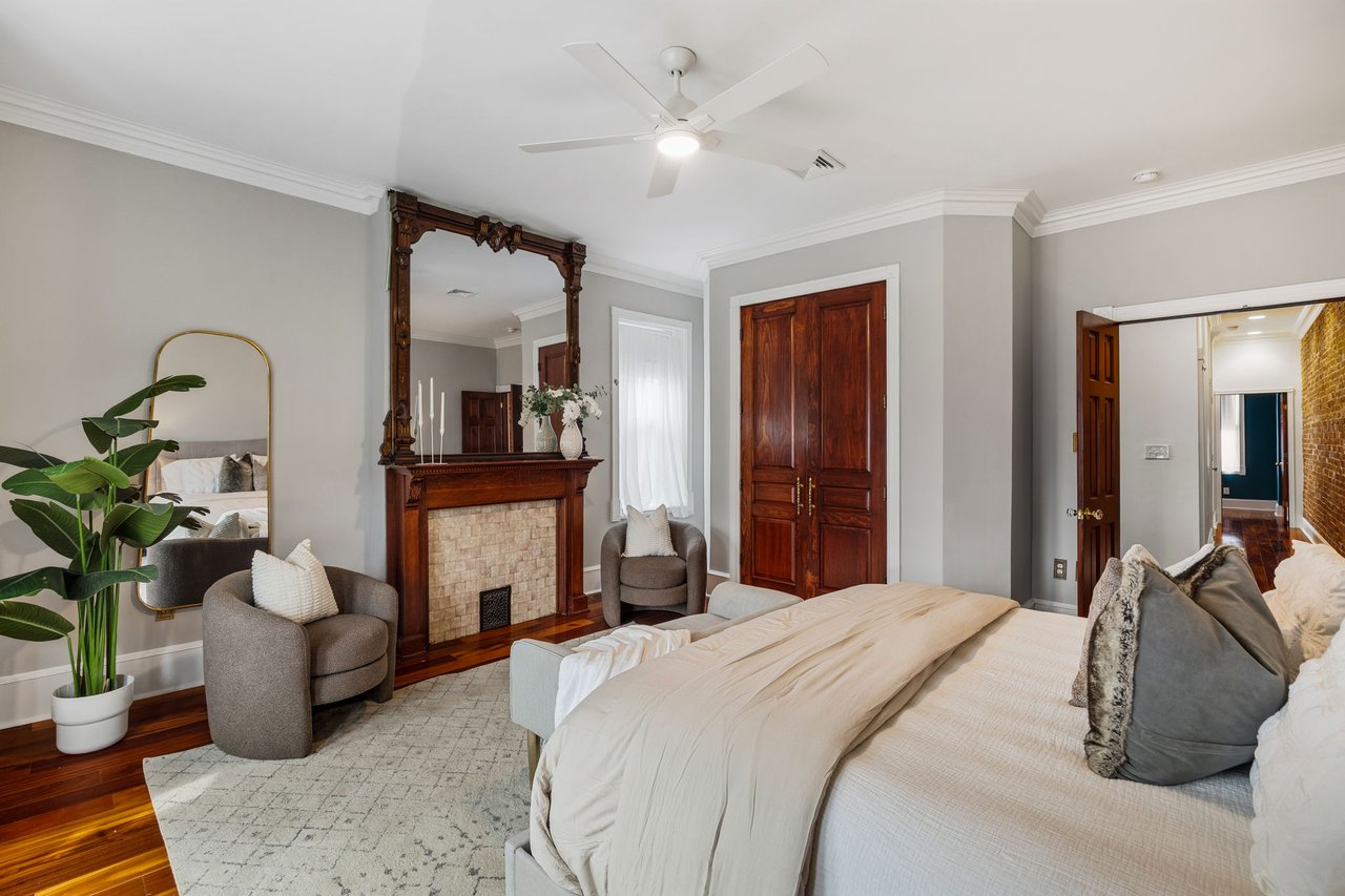 You’ll believe in love at first sight when you walk through the mahogany front door of this truly stunning, one-of-a kind home that combines historical charm with modern amenities. Step inside the ornately-tiled entryway with original stained glass door & transom to a gorgeous living room with 10’ high ceilings, hardwood floors, crown molding, a decorative mantle, and exposed brick wall. Continue to the spacious dining room with built-ins, open to the recently-renovated chef’s kitchen including two-tone cabinetry, granite countertops, a chic tile backsplash, and a glass door pantry. Head up the freshly carpeted stairs, past an original stained glass window, to find a luxurious primary bedroom with crown molding, original decorative mantle, and a sunny bay window. This floor features two additional large bedrooms and a tastefully renovated bathroom with a double vanity, glass-enclosed shower, and a cast iron clawfoot tub. The huge 3rd floor bonus space is perfect for relaxing or entertaining with soaring ceilings and a custom built-in wet bar, complete with a wine fridge and kegerator! The stairs lead to the roof with incredible views of the Center City skyline. Roof deck potential! The spacious basement, ready to be finished, boasts laundry, storage and a nicely updated full bathroom. Other bonus features include dual zone HVAC, newer sewer and water lines and a rear patio accessible from S Bouvier Street. This home was owned by the original family circa 1900-2005. *Some exterior photos have been edited for marketing purposes.