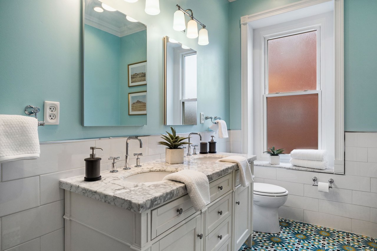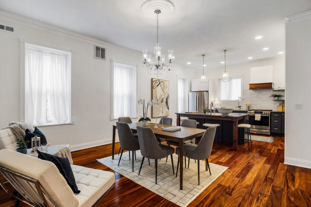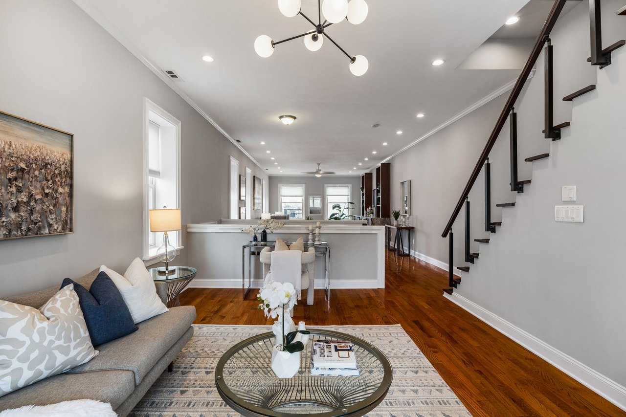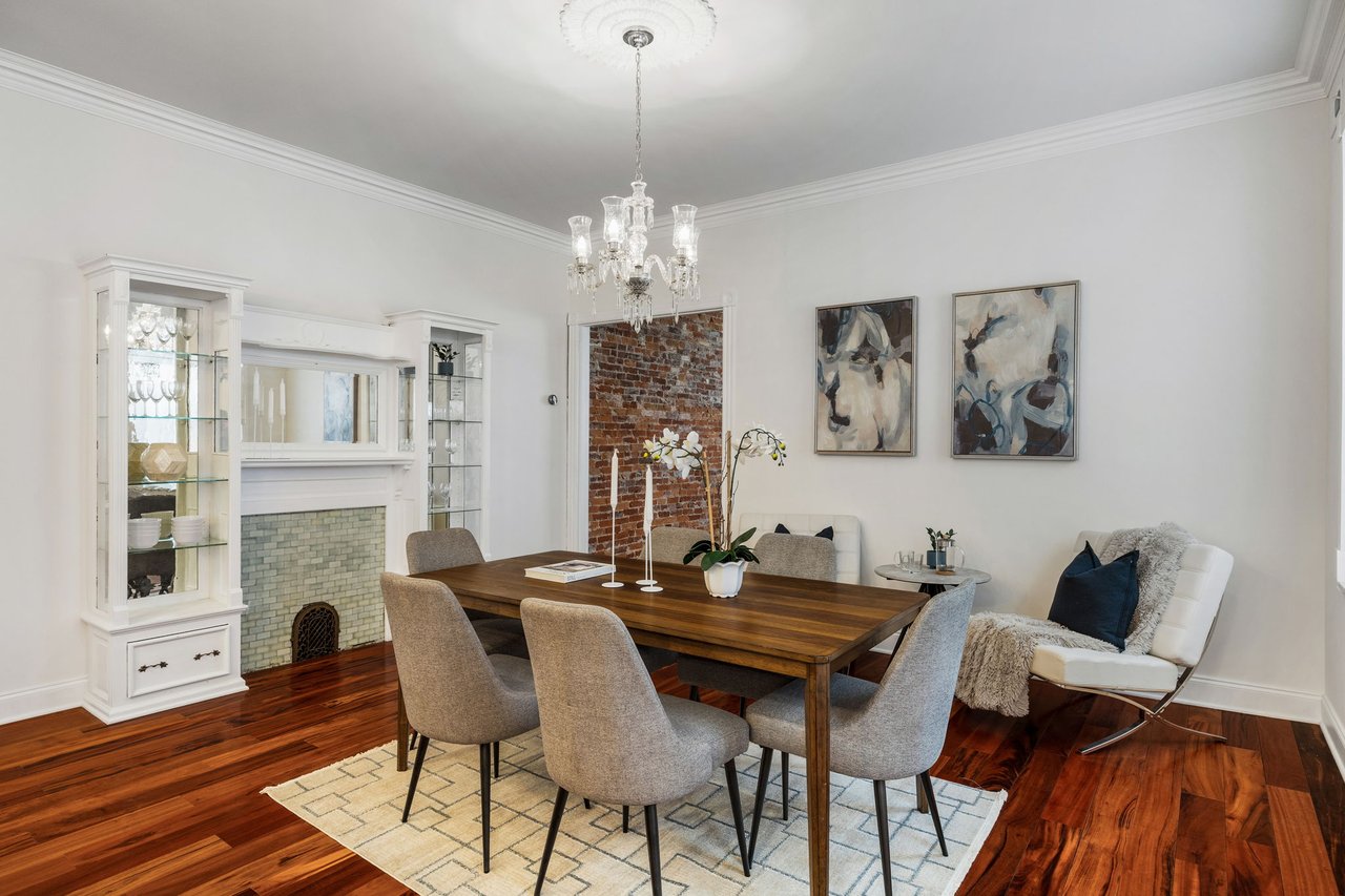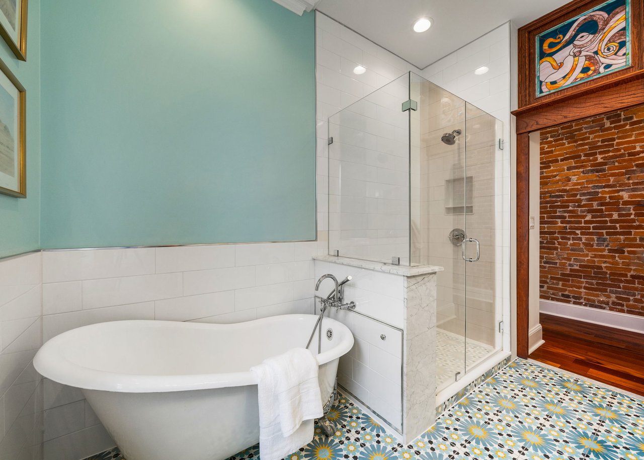 You’ll believe in love at first sight when you walk through the mahogany front door of this truly stunning, one-of-a kind home that combines historical charm with modern amenities. Step inside the ornately-tiled entryway with original stained glass door & transom to a gorgeous living room with 10’ high ceilings, hardwood floors, crown molding, a decorative mantle, and exposed brick wall. Continue to the spacious dining room with built-ins, open to the recently-renovated chef’s kitchen including two-tone cabinetry, granite countertops, a chic tile backsplash, and a glass door pantry. Head up the freshly carpeted stairs, past an original stained glass window, to find a luxurious primary bedroom with crown molding, original decorative mantle, and a sunny bay window. This floor features two additional large bedrooms and a tastefully renovated bathroom with a double vanity, glass-enclosed shower, and a cast iron clawfoot tub. The huge 3rd floor bonus space is perfect for relaxing or entertaining with soaring ceilings and a custom built-in wet bar, complete with a wine fridge and kegerator! The stairs lead to the roof with incredible views of the Center City skyline. Roof deck potential! The spacious basement, ready to be finished, boasts laundry, storage and a nicely updated full bathroom. Other bonus features include dual zone HVAC, newer sewer and water lines and a rear patio accessible from S Bouvier Street. This home was owned by the original family circa 1900-2005. *Some exterior photos have been edited for marketing purposes.