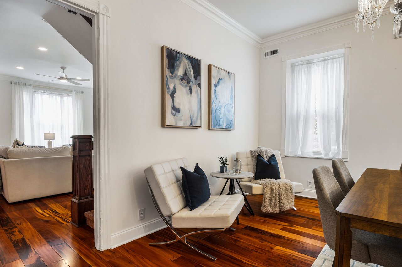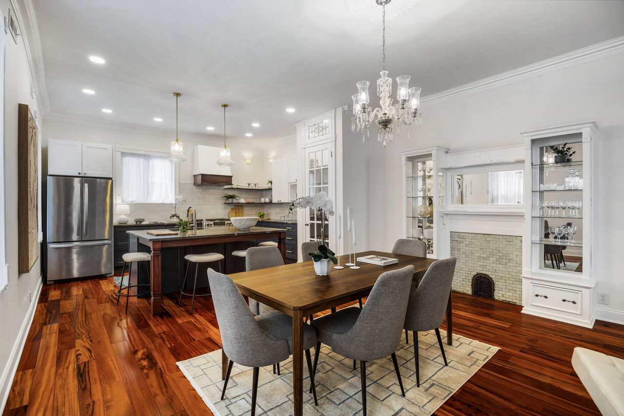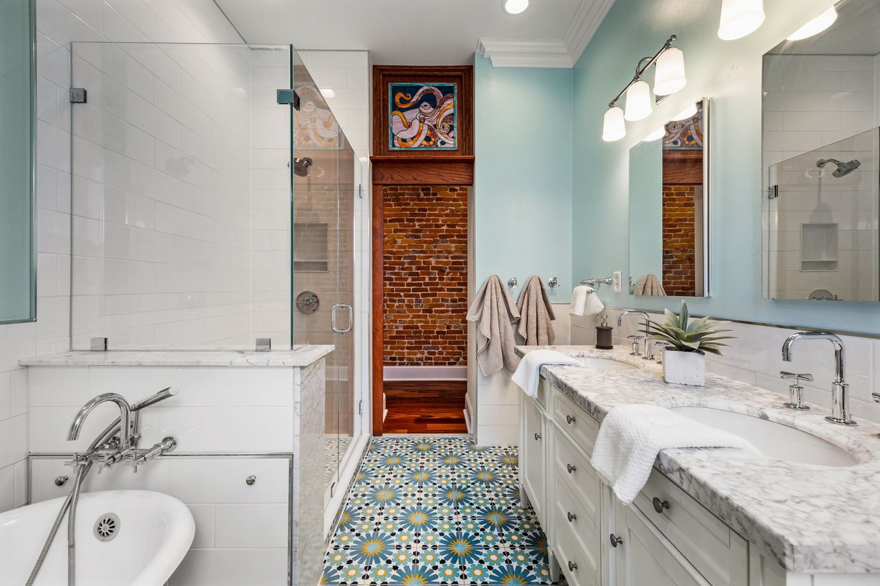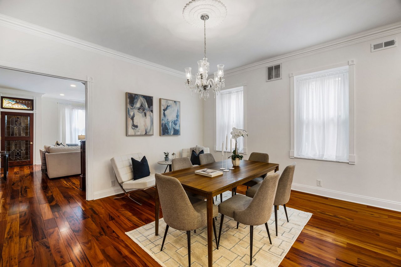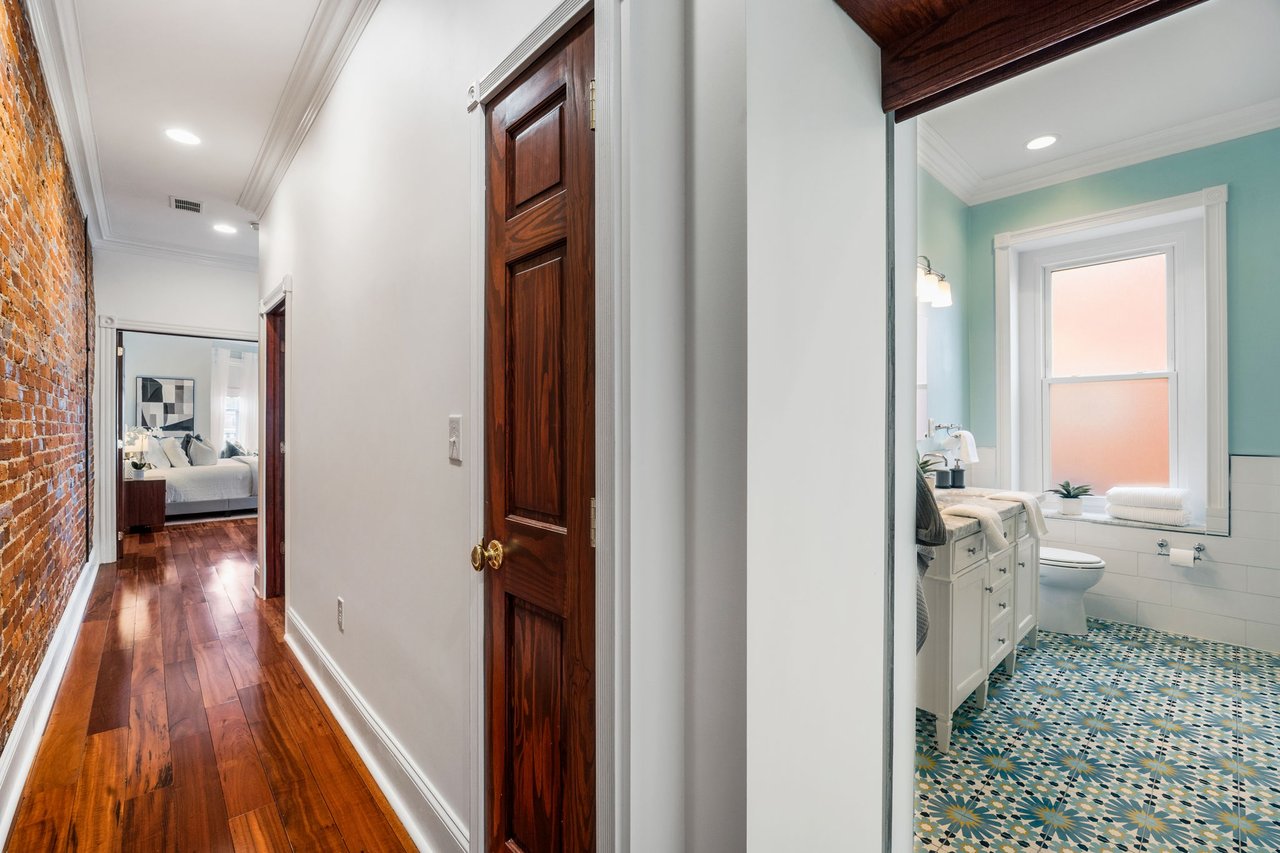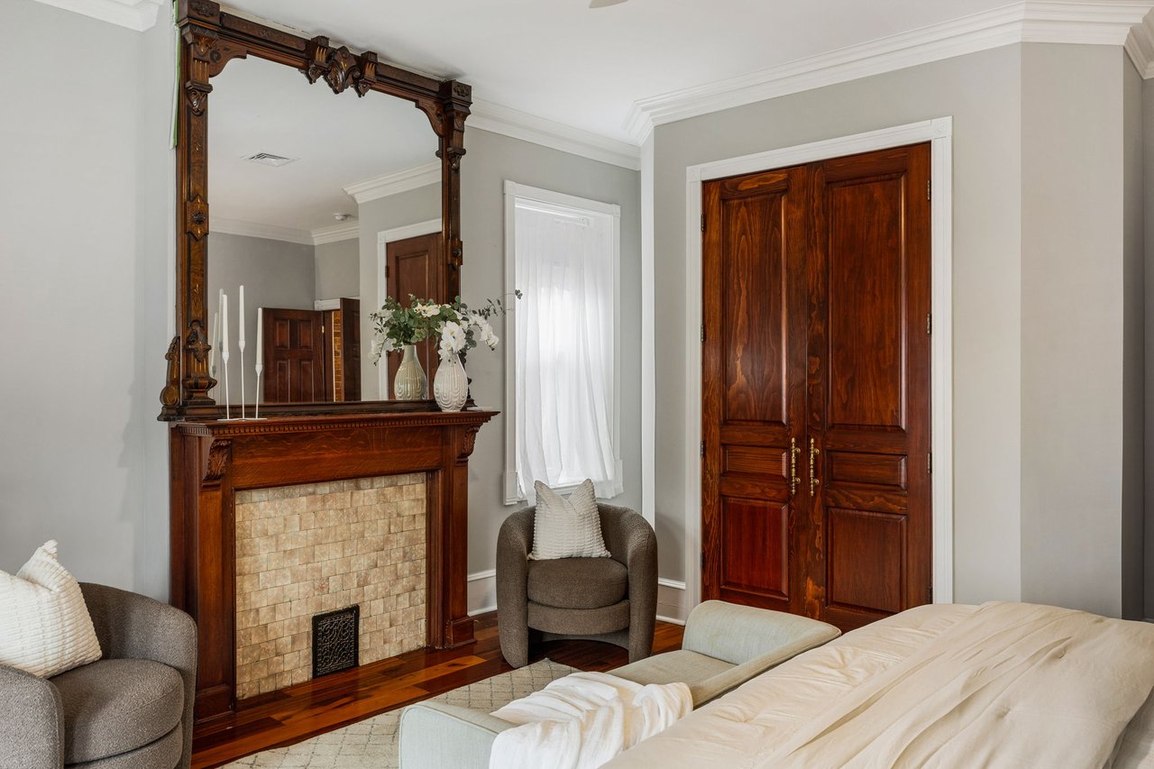 You’ll believe in love at first sight when you walk through the mahogany front door of this truly stunning, one-of-a kind home that combines historical charm with modern amenities. Step inside the ornately-tiled entryway with original stained glass door & transom to a gorgeous living room with 10’ high ceilings, hardwood floors, crown molding, a decorative mantle, and exposed brick wall. Continue to the spacious dining room with built-ins, open to the recently-renovated chef’s kitchen including two-tone cabinetry, granite countertops, a chic tile backsplash, and a glass door pantry. Head up the freshly carpeted stairs, past an original stained glass window, to find a luxurious primary bedroom with crown molding, original decorative mantle, and a sunny bay window. This floor features two additional large bedrooms and a tastefully renovated bathroom with a double vanity, glass-enclosed shower, and a cast iron clawfoot tub. The huge 3rd floor bonus space is perfect for relaxing or entertaining with soaring ceilings and a custom built-in wet bar, complete with a wine fridge and kegerator! The stairs lead to the roof with incredible views of the Center City skyline. Roof deck potential! The spacious basement, ready to be finished, boasts laundry, storage and a nicely updated full bathroom. Other bonus features include dual zone HVAC, newer sewer and water lines and a rear patio accessible from S Bouvier Street. This home was owned by the original family circa 1900-2005. *Some exterior photos have been edited for marketing purposes.