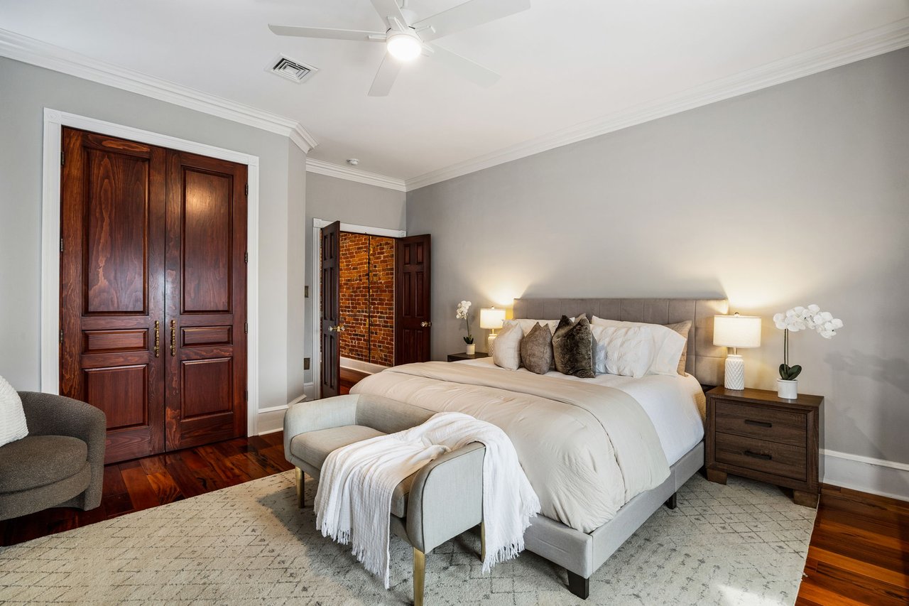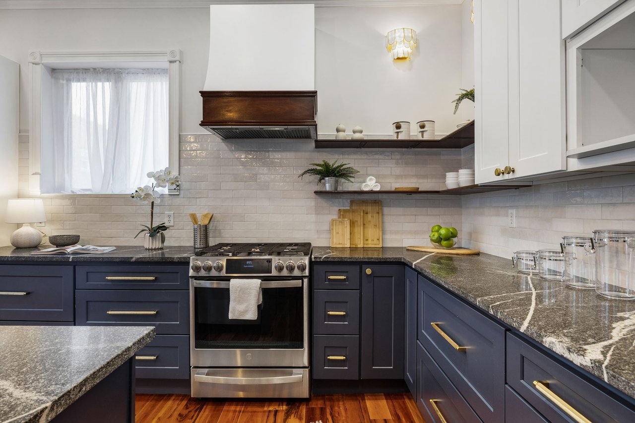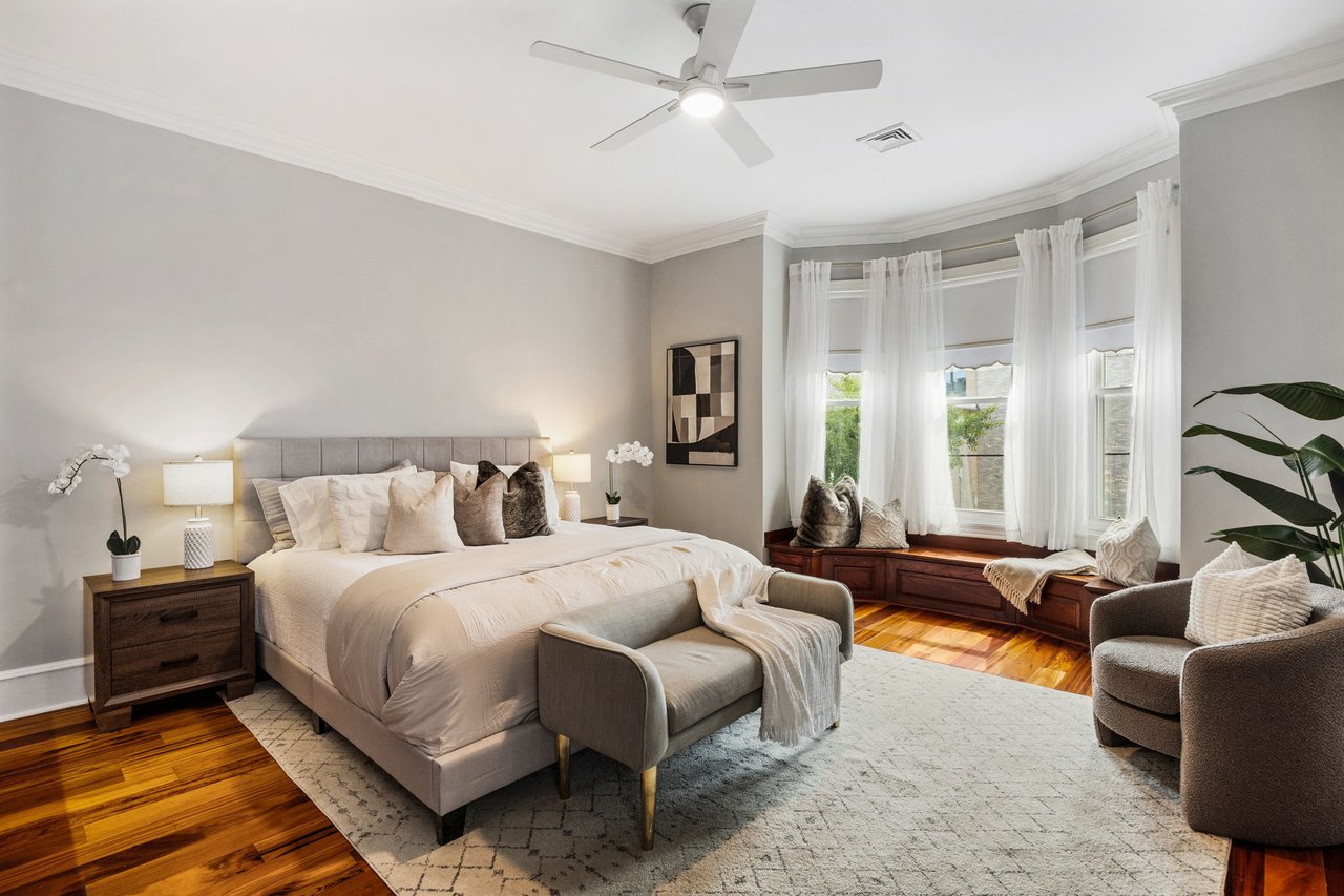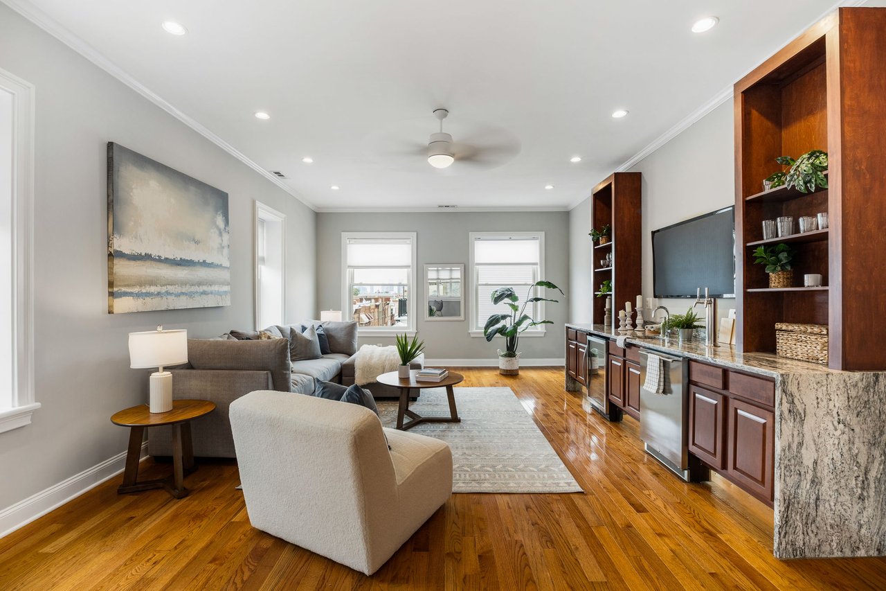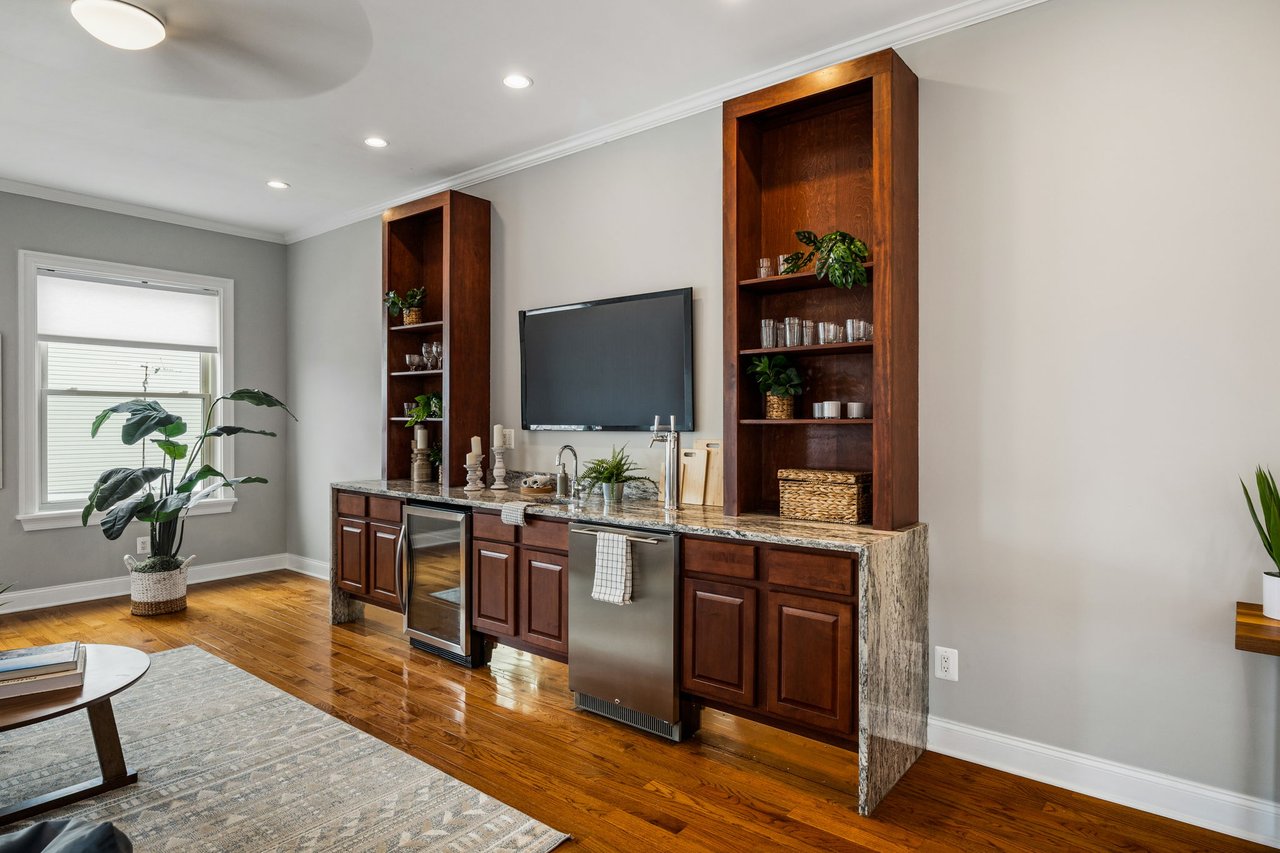 You’ll believe in love at first sight when you walk through the mahogany front door of this truly stunning, one-of-a kind home that combines historical charm with modern amenities. Step inside the ornately-tiled entryway with original stained glass door & transom to a gorgeous living room with 10’ high ceilings, hardwood floors, crown molding, a decorative mantle, and exposed brick wall. Continue to the spacious dining room with built-ins, open to the recently-renovated chef’s kitchen including two-tone cabinetry, granite countertops, a chic tile backsplash, and a glass door pantry. Head up the freshly carpeted stairs, past an original stained glass window, to find a luxurious primary bedroom with crown molding, original decorative mantle, and a sunny bay window. This floor features two additional large bedrooms and a tastefully renovated bathroom with a double vanity, glass-enclosed shower, and a cast iron clawfoot tub. The huge 3rd floor bonus space is perfect for relaxing or entertaining with soaring ceilings and a custom built-in wet bar, complete with a wine fridge and kegerator! The stairs lead to the roof with incredible views of the Center City skyline. Roof deck potential! The spacious basement, ready to be finished, boasts laundry, storage and a nicely updated full bathroom. Other bonus features include dual zone HVAC, newer sewer and water lines and a rear patio accessible from S Bouvier Street. This home was owned by the original family circa 1900-2005. *Some exterior photos have been edited for marketing purposes.
